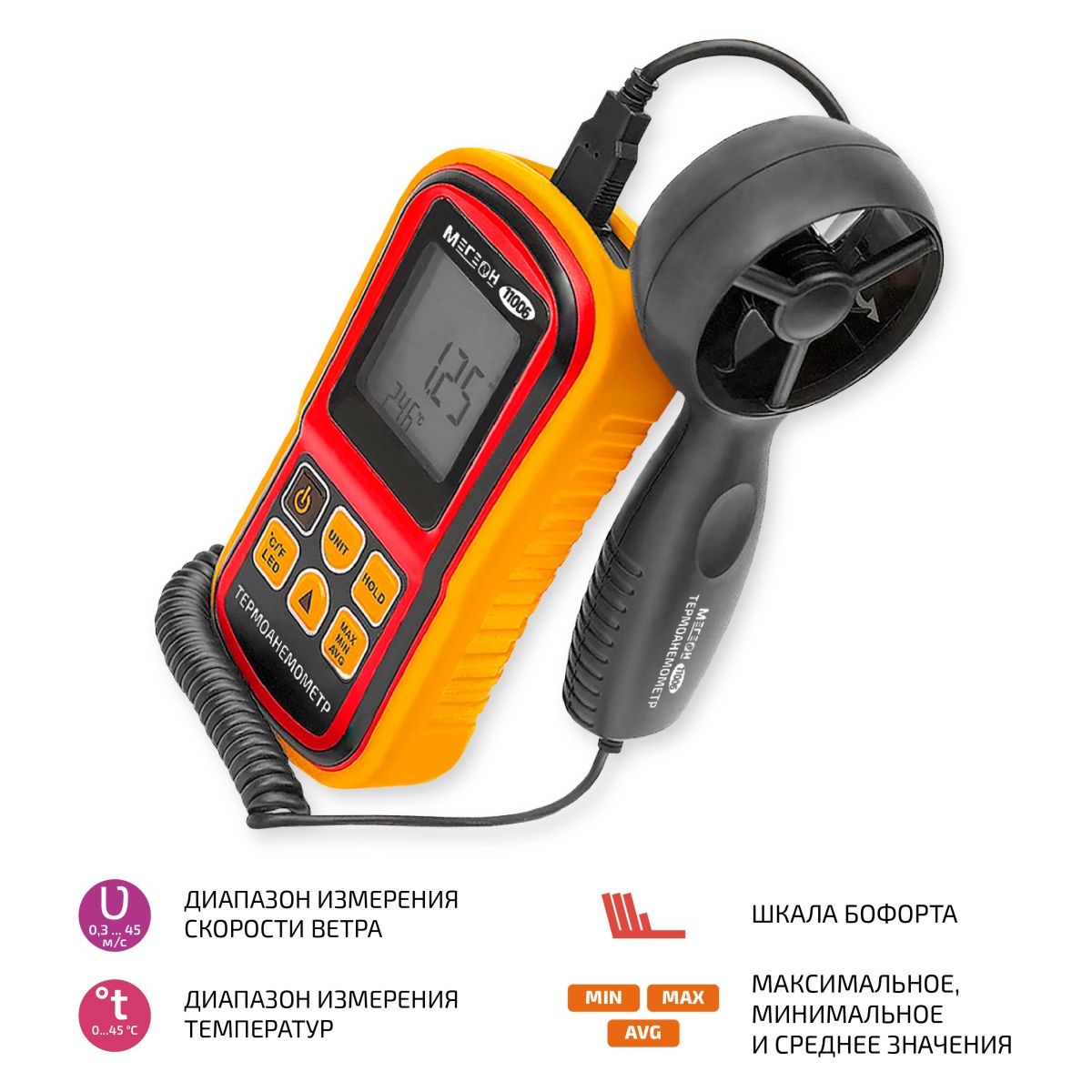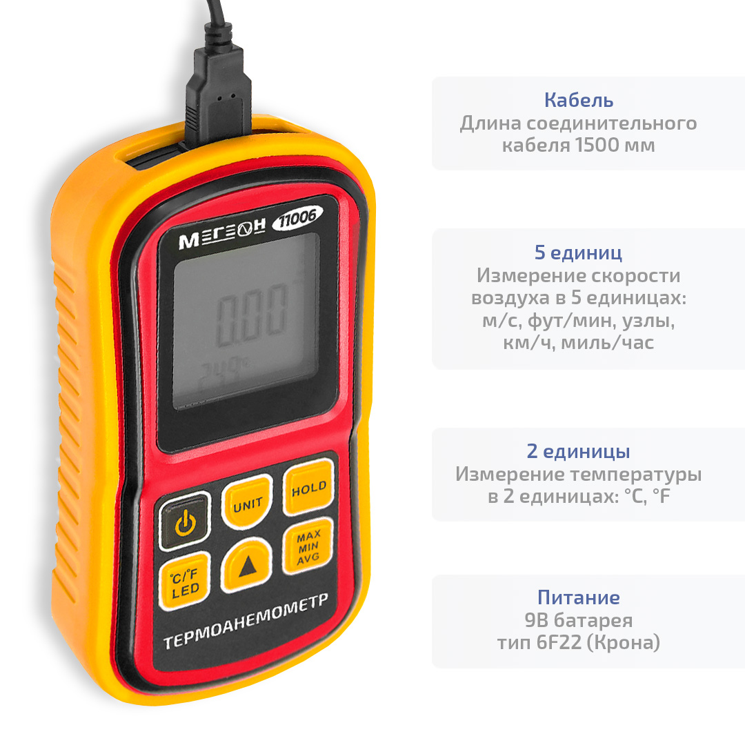 - Анемометр крыльчатый цифровой МЕГЕОН 11006