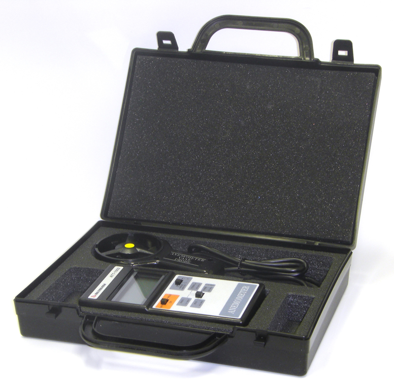 Портативный крыльчатый анемометр с возможностью измерения температуры. В приборе использован выносной датчик (крыльчатка), снабженный подвеской на шарикоподшипниках с малым трением и обеспечивающий быстрое и точное дистанционное измерение скорости воздушного потока, его температуры и мгновенную индикацию на ЖК-дисплее. Прибор отображает измеренные значения во всех принятых единицах измерения (м/с, км/ч, футы/мин, узлы). Последнее измеренное значение может сохраняться в памяти автоматически.