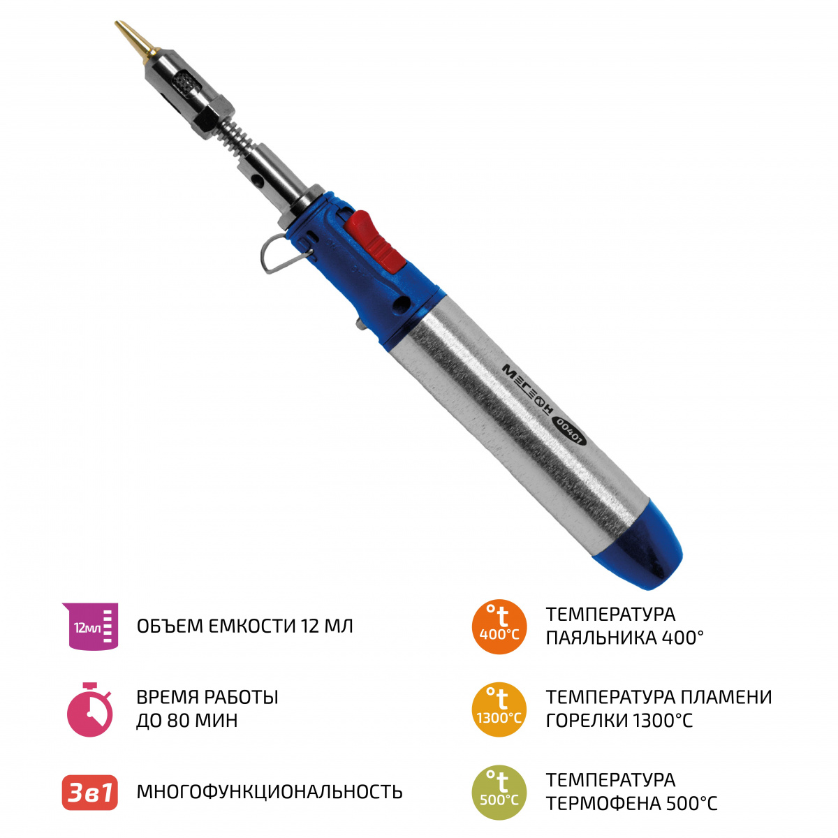 - Газовый паяльник "3 в 1" МЕГЕОН 00401