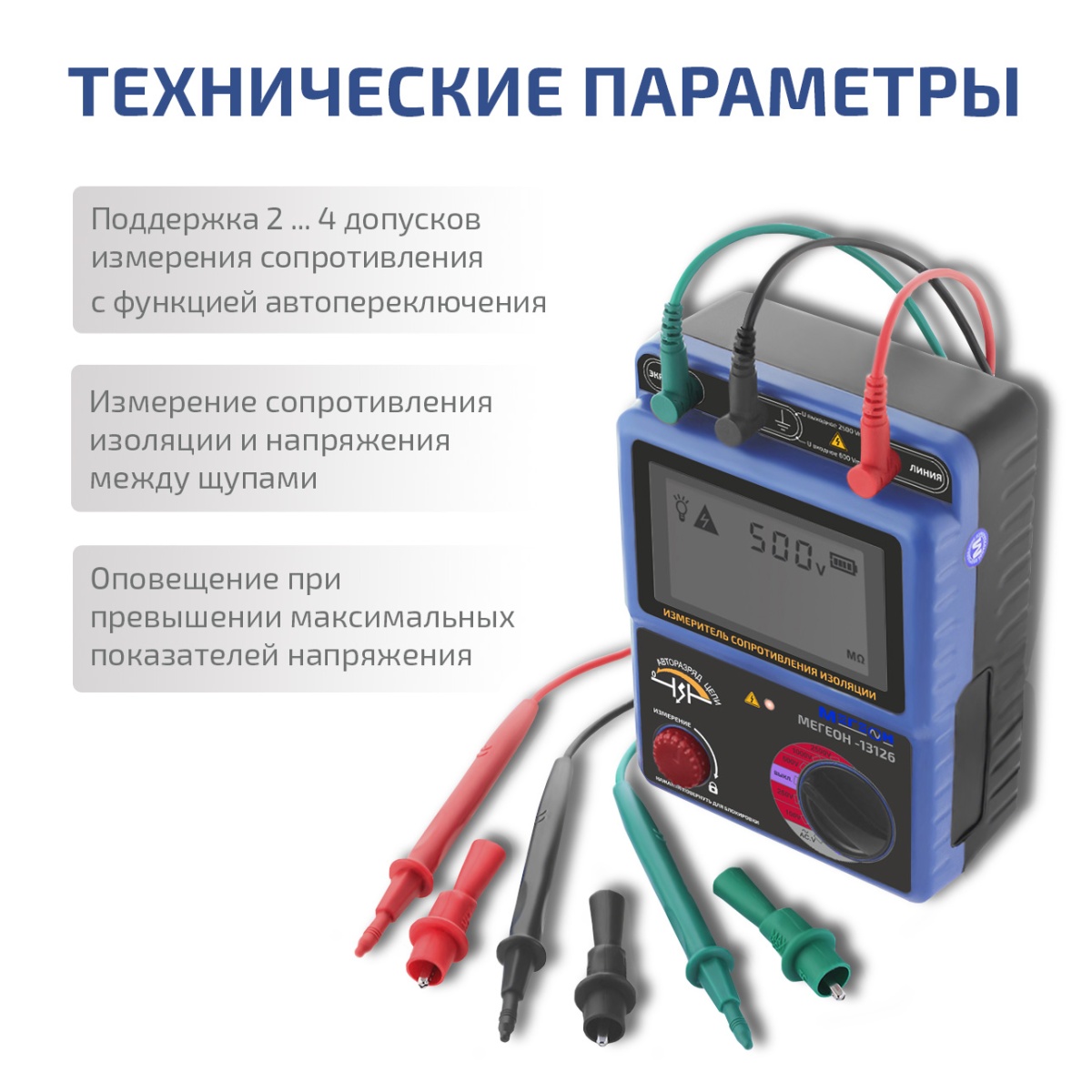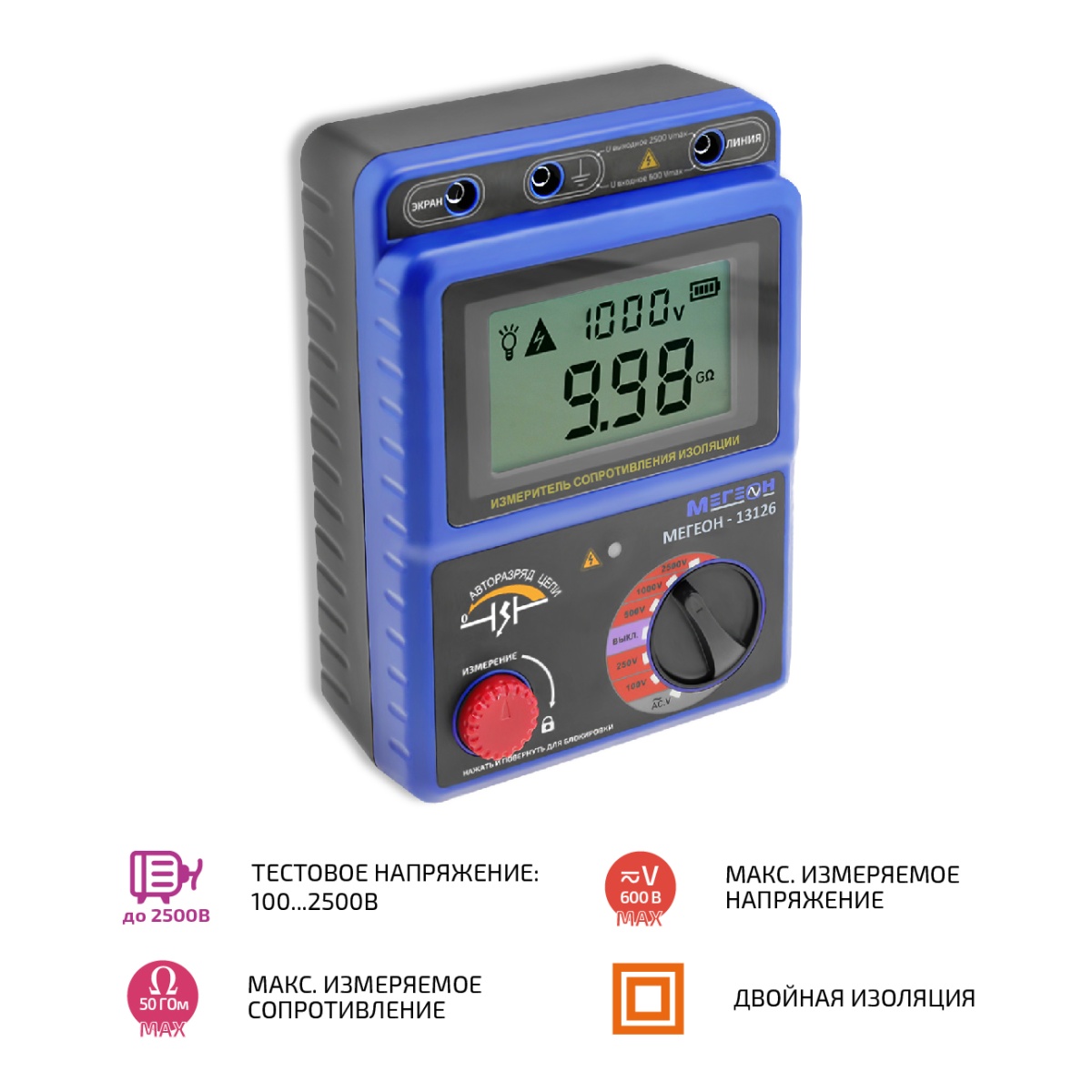 - Измеритель сопротивления изоляции (мегаомметр) МЕГЕОН 13126