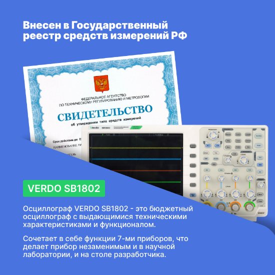 - VERDO SB1802 Осциллограф цифровой 4 канала, 350 МГц, 5 Гвыб/с