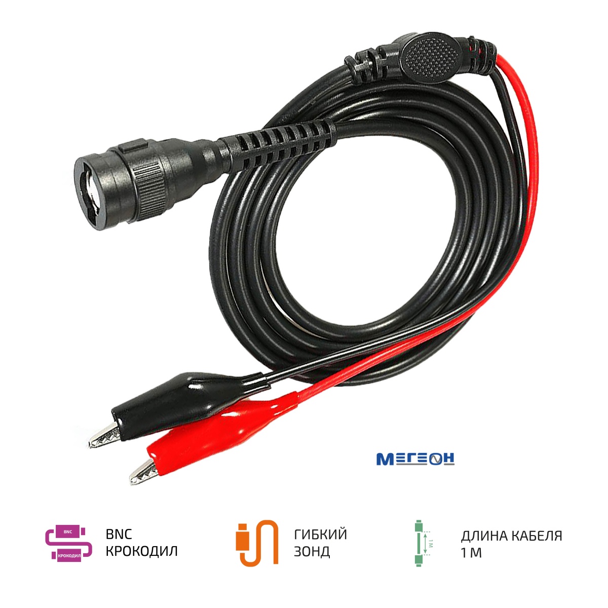 - Кабель измерительный коаксиальный МЕГЕОН BNC - "Крокодил"