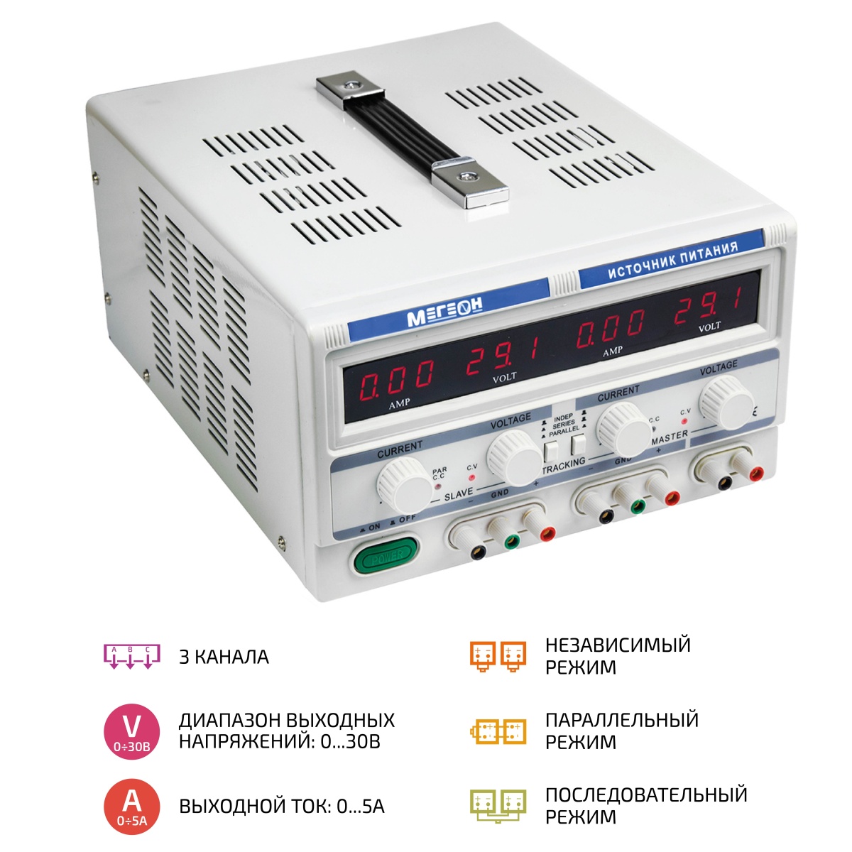 - Трёхканальный линейный источник питания МЕГЕОН 323051